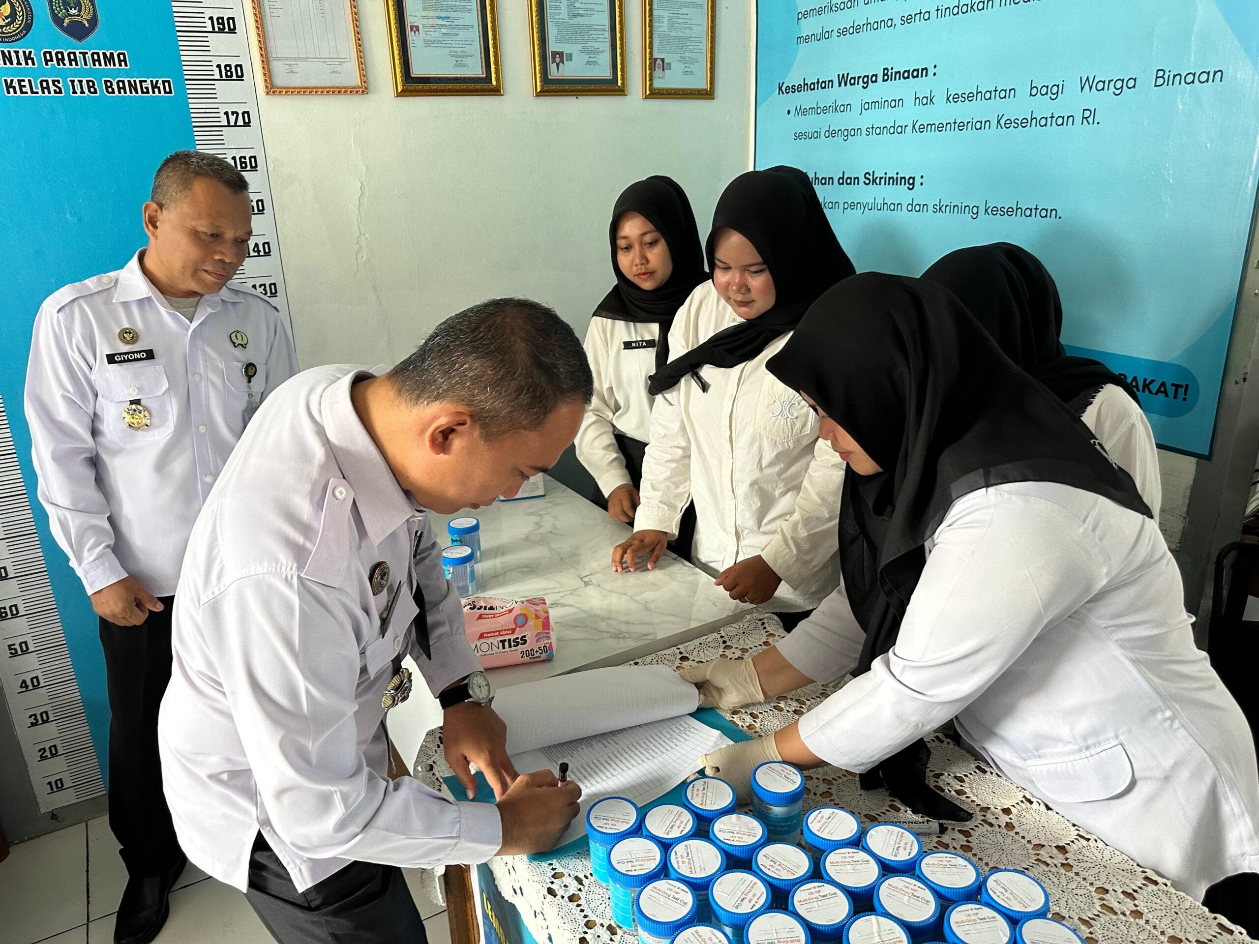 Merangin, netinfo.id – Seluruh petugas Lembaga Pemasyarakatan (Lapas) Kelas IIB Bangko mengikuti kegiatan tes urine yang dilaksanakan secara serentak di seluruh Indonesia di lingkungan Kementerian Imigrasi dan Pemasyarakatan Republik Indonesia.