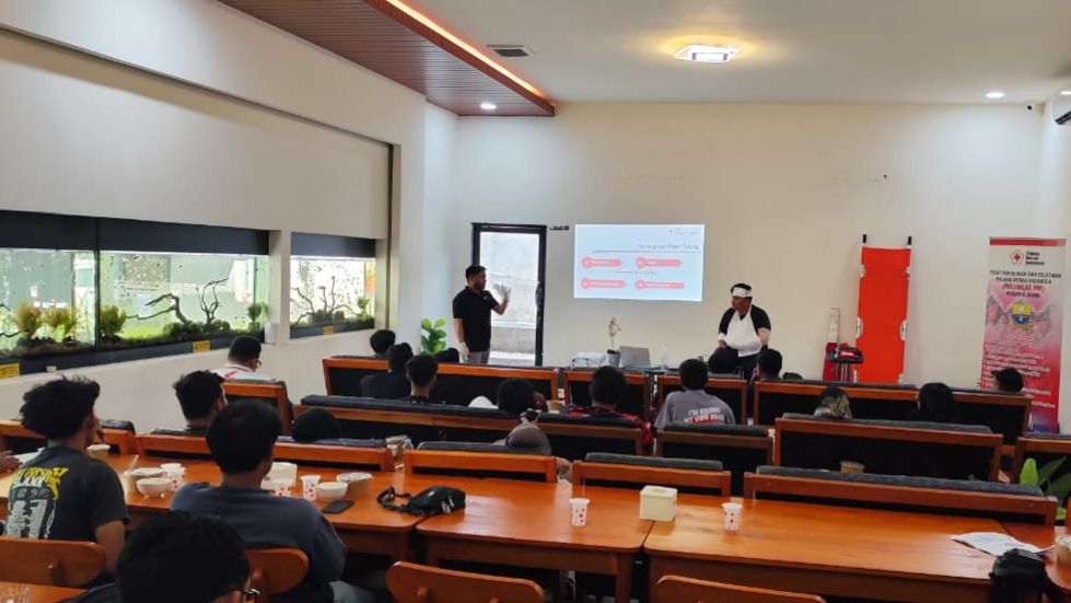Materi yang diberikan mencakup Safety Riding Brief, Basic Life Support Training, hingga pengetahuan dasar pertolongan pertama pada kecelakaan (P3K).