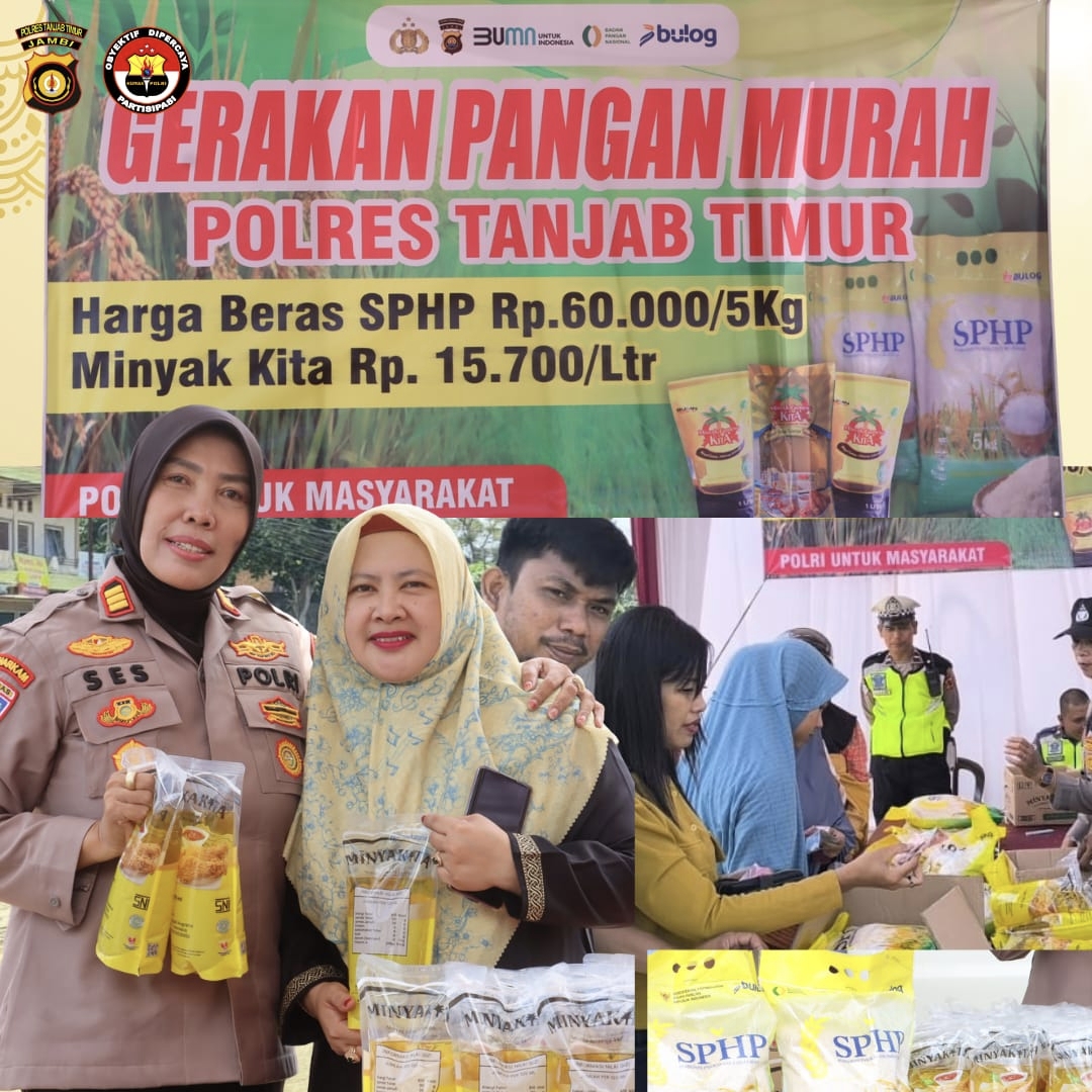 Kegiatan ini dipimpin langsung oleh Kasat Binmas Polres Tanjab Timur, AKP Ses Ekowati, S.H., sebagai langkah konkret Polri dalam membantu masyarakat memperoleh kebutuhan pokok dengan harga yang lebih terjangkau.