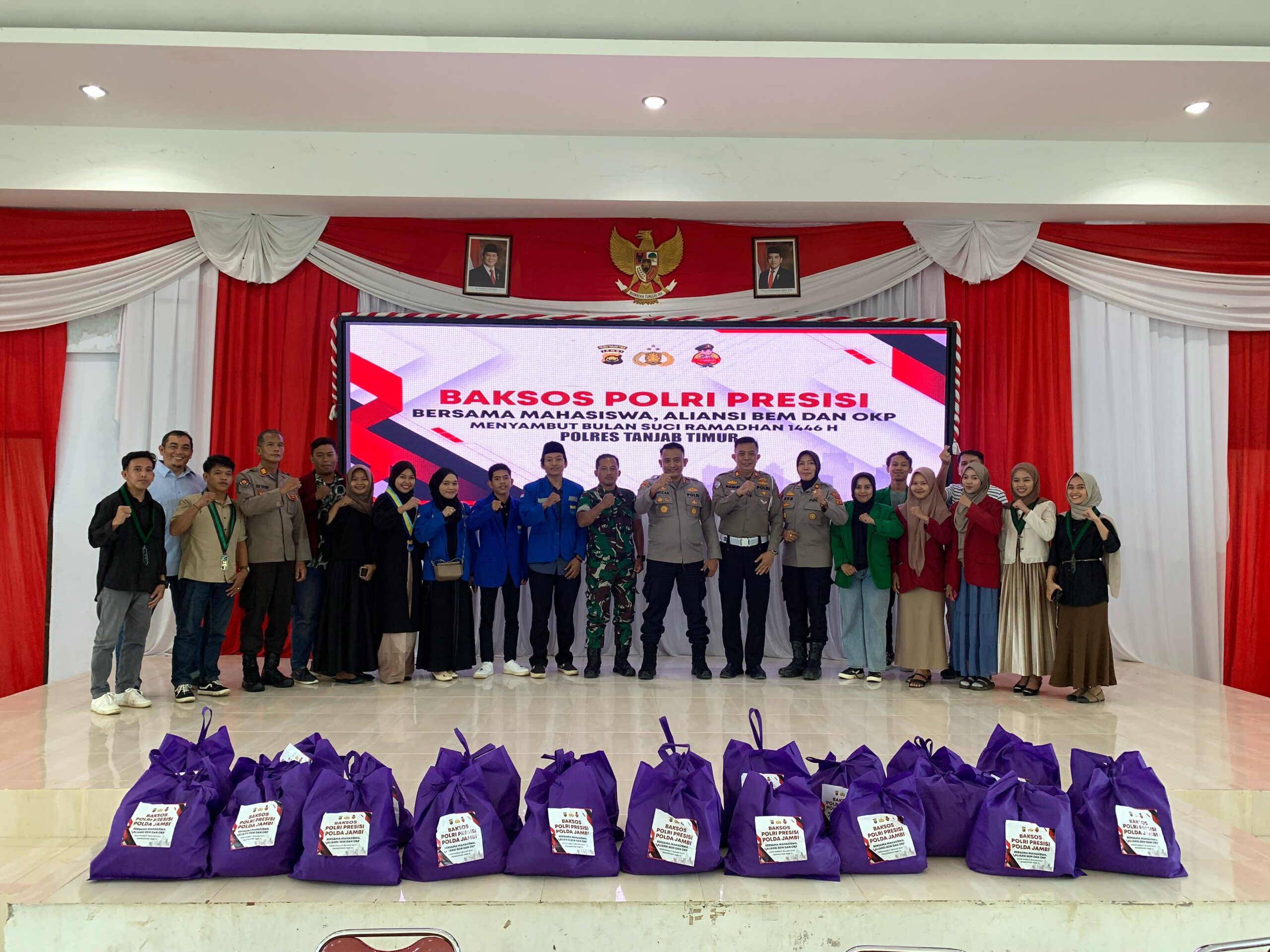 MUARASABAK, netinfo.id – Menjelang bulan suci Ramadhan, Polres Tanjab Timur menggelar kegiatan Bakti Sosial (Baksos) Presisi Polri bersama mahasiswa dari Aliansi BEM dan OKP, Kamis (27/2/2025).
