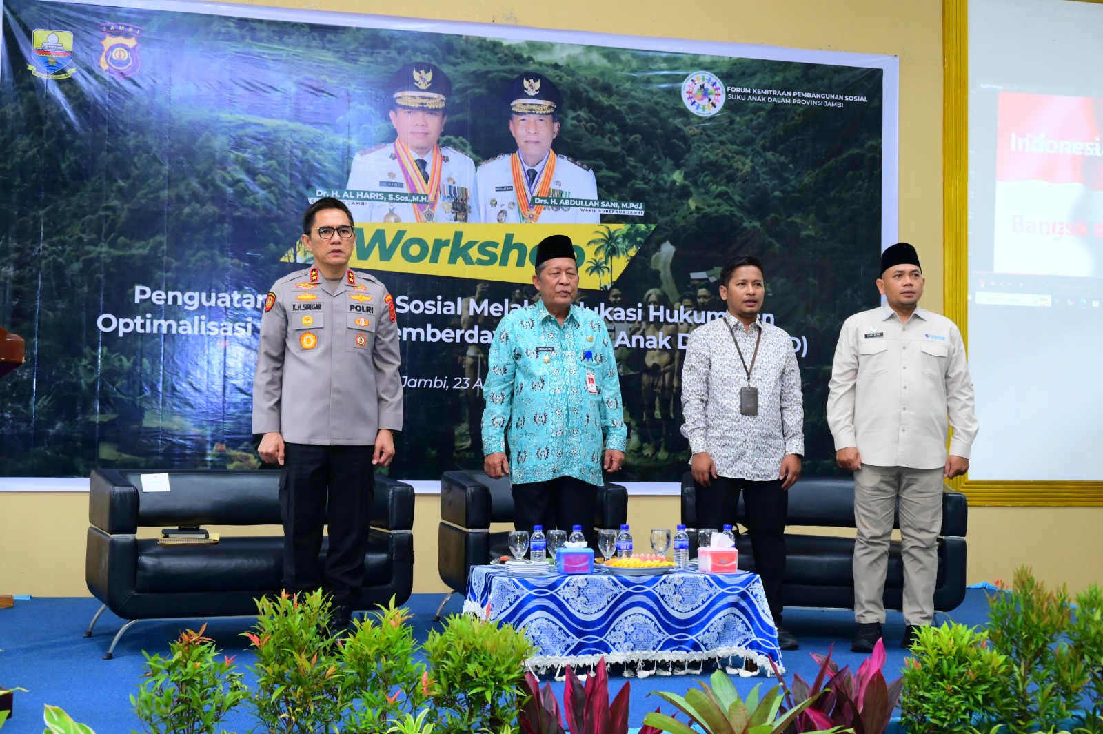 Dir Intelkam Polda Jambi Kombes Pol. Yuli Haryudo, unsur Pemerintah Provinsi Jambi, perwakilan Kementerian Sosial RI, Kepala Kantor HAM Provinsi Jambi, serta para tumenggung atau pimpinan Suku Anak Dalam se-Provinsi Jambi.