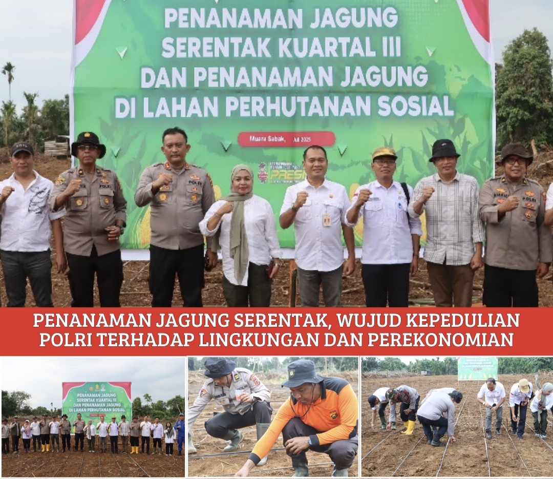 Muarasabak, netinfo.id – Kapolres Tanjabtimur bersama sejumlah unsur terkait, yakni Kepala Dinas Perkebunan, Kepala Dinas Pertanian, Plt. Kepala Dinas Ketahanan Pangan, para Penyuluh Pertanian Lapangan (PPL), serta kelompok tani setempat, melaksanakan kegiatan penanaman jagung serentak Kuartal III, Rabu (9/07/25).