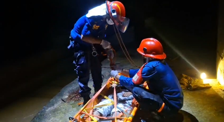 Tak butuh waktu lama, 20 menit berselang, tim rescue Damkar tiba di lokasi. Namun medan gelap, curam, dan berisiko tinggi membuat proses evakuasi berlangsung menegangkan.
