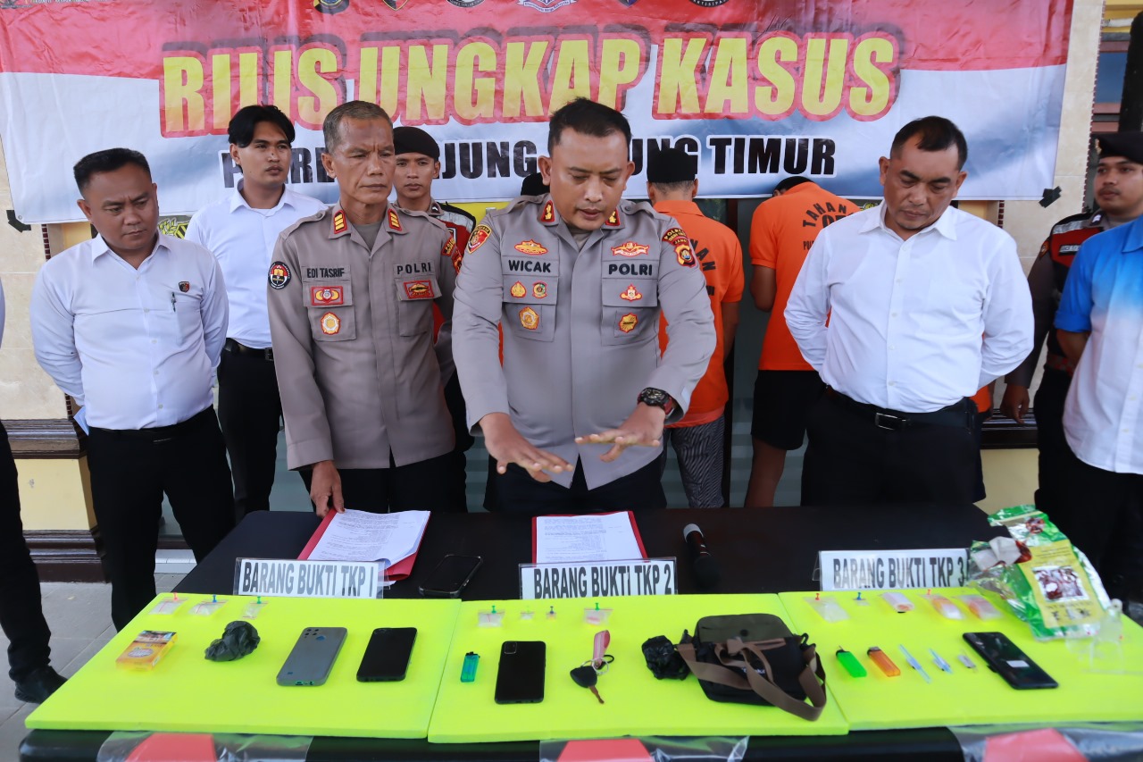 Kelima nama yang diamankan Hendra Saputra, Heriyanto, Sandi Pratama, M. Abas, dan Kambek dijaring di tiga lokasi berbeda, dan polisi menyita 46,68 gram sabu plus satu butir ekstasi.