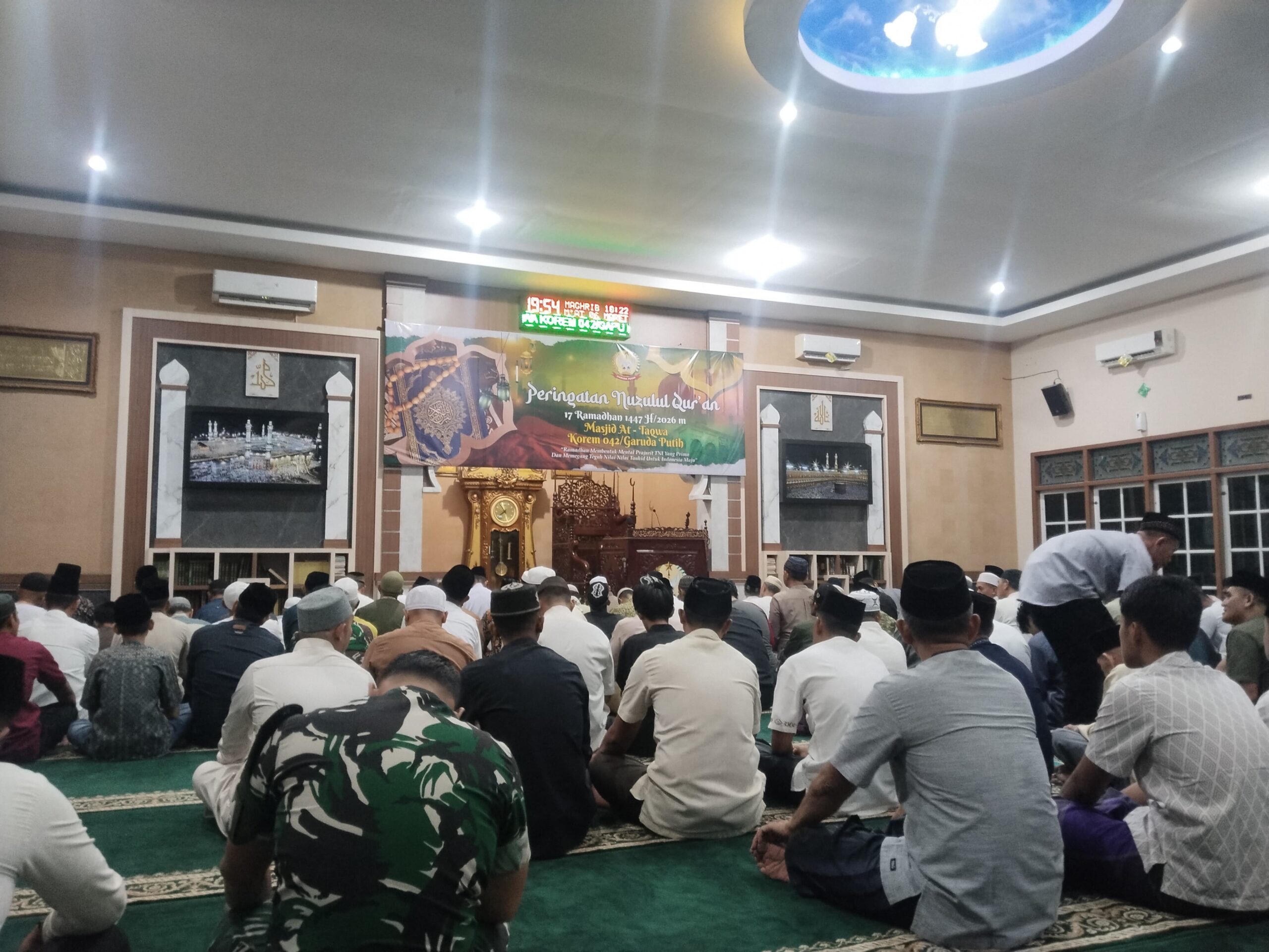Jambi, netinfo.id – Korem 042/Gapu menggelar peringatan Nuzulul Quran 17 Ramadhan 1447 H/2026 M di Masjid At-Taqwa Korem 042/Gapu pada Jumat (6/3/2026).