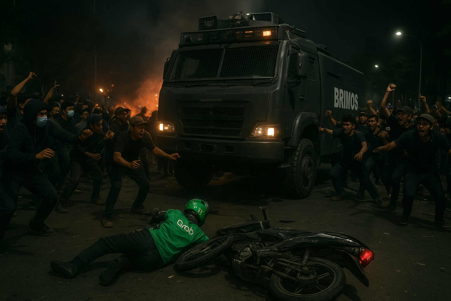 Seorang pengemudi ojek online (ojol) bernama Affan jadi korban setelah tertabrak dan terlindas kendaraan taktis (rantis) Brimob yang sedang membubarkan massa.