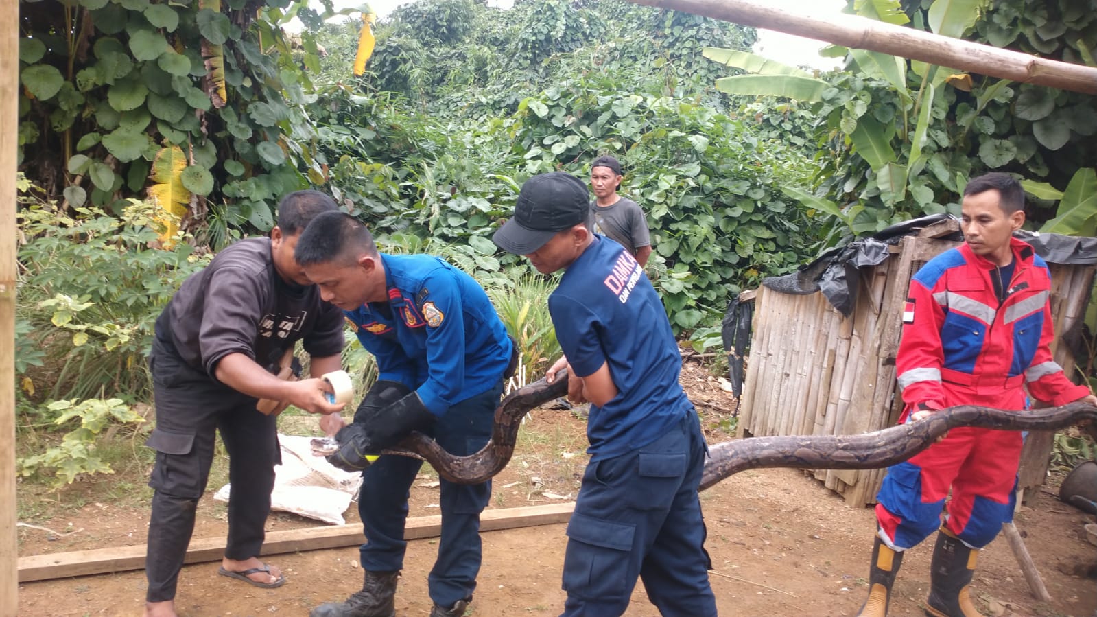 Petugas Damkar Evakuasi Ular Piton Sepanjang 4 Meter dari Sumur Warga di Tanjab Timur