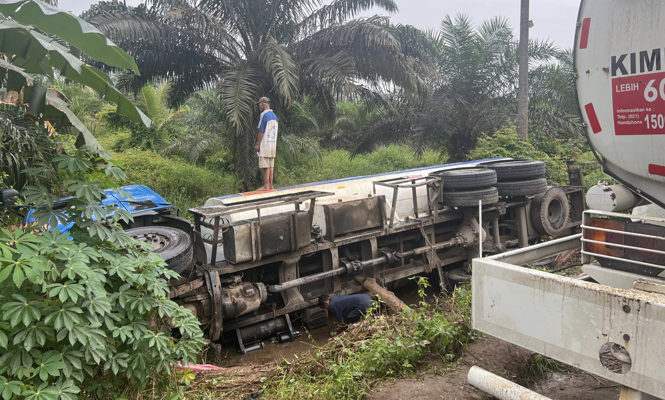 Muarasabak, netinfo.id – Warga Nibung Putih RT 06 RW 01, Kelurahan Nibung Putih, Kecamatan Muara Sabak Barat, dikejutkan oleh pemandangan tak biasa, sebuah truk tangki biru putih bernopol L 8128 UT mendadak terguling dan nyemplung ke kanal, Rabu (17/09/25) sore.