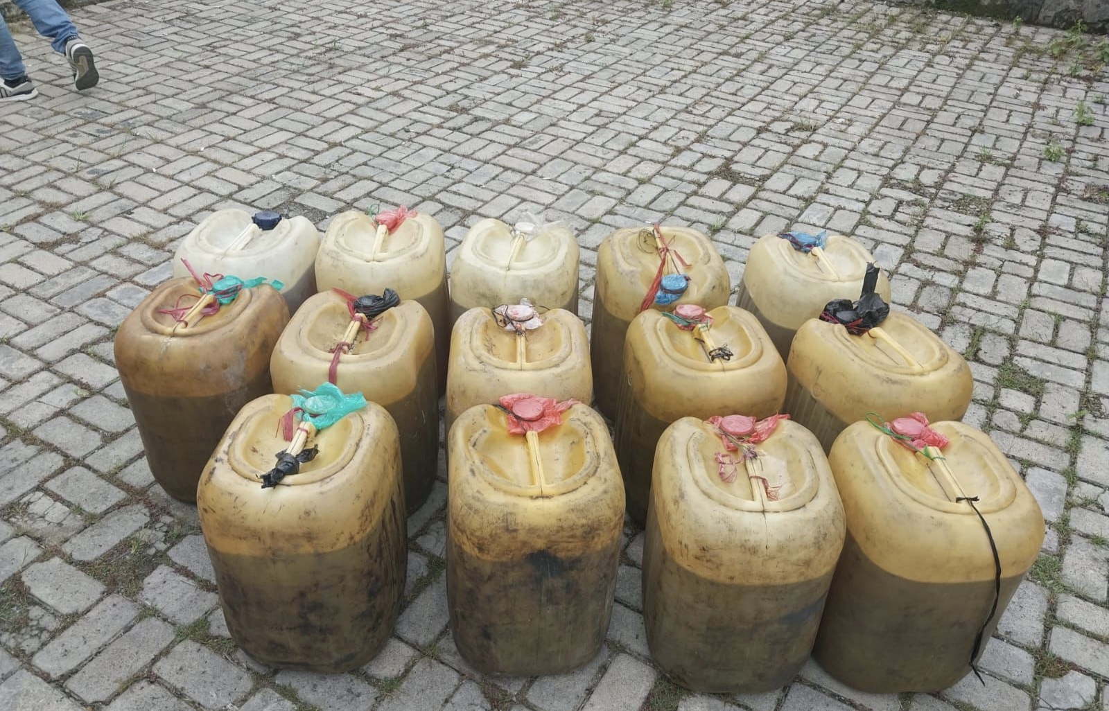 Dalam operasi tersebut, petugas mengamankan dua orang pelaku beserta barang bukti berupa puluhan jerigen BBM jenis Solar dan Pertalite.